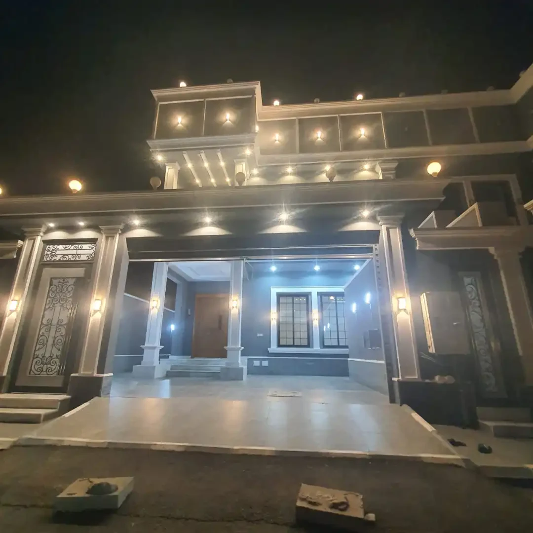 درج داخلي, مدخلين, تأسيس مصعد. الدور الأرضي: 2 مجلس- صالة - مطبخ - 2 دورة مياه. الدور الأول: 3 غ نوم ماستر - 1 غ نوم - بلكونة - 4 دورة مياه. الملحق: صالة - 1 غ نوم ماستر - 1 دورة مياه - منطقة سيرفس - منطقة غسيل - سطح.